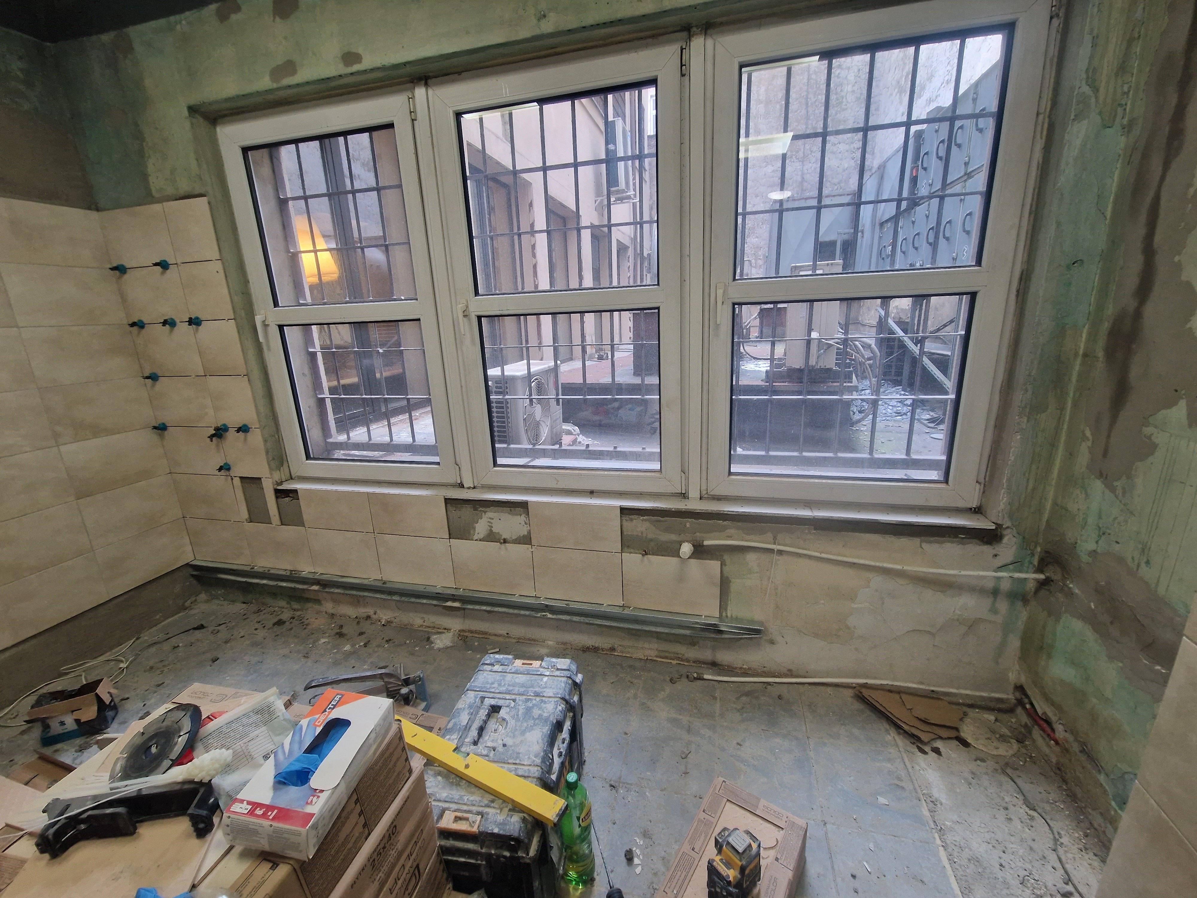 Dla branży gastronomicznej czas to pieniądz, a każdy dzień opóźnienia w otwarciu generuje straty. Rozumiejąc te potrzeby, harmonogram działań dostosowaliśmy w 100% do inwestora, wykorzystując nasz największy atut – prace remontowe w nocy i po godzinach. Dzięki temu szeroko zakrojone roboty, obejmujące między innymi montaż systemów wentylacyjnych, przygotowanie podejść wodno-kanalizacyjnych oraz zaawansowane prace elektryczne (kluczowe przy dużej ilości sprzętu gastronomicznego), przebiegły sprawnie i bez zakłócania funkcjonowania sąsiednich biznesów. Z uwagi na specyfikę lokalu, szczególną wagę przyłożyliśmy do najwyższych standardów higieny i precyzji wykończenia powierzchni łatwo zmywalnych na zapleczu.